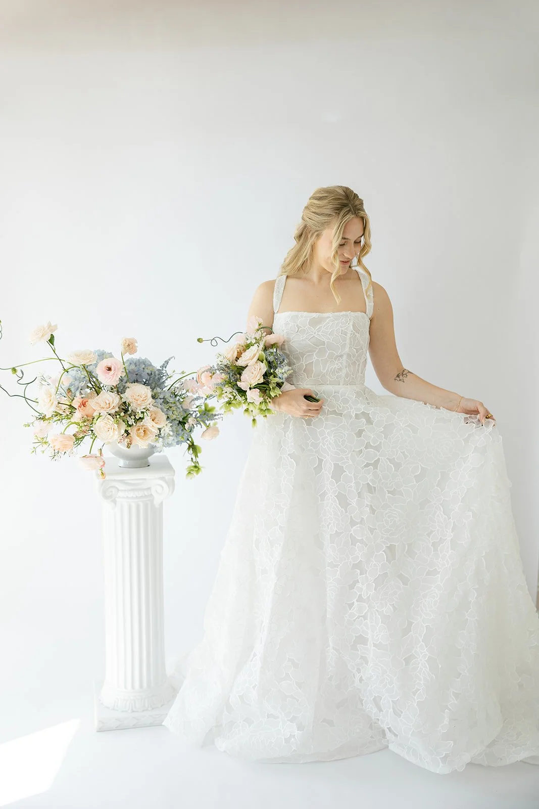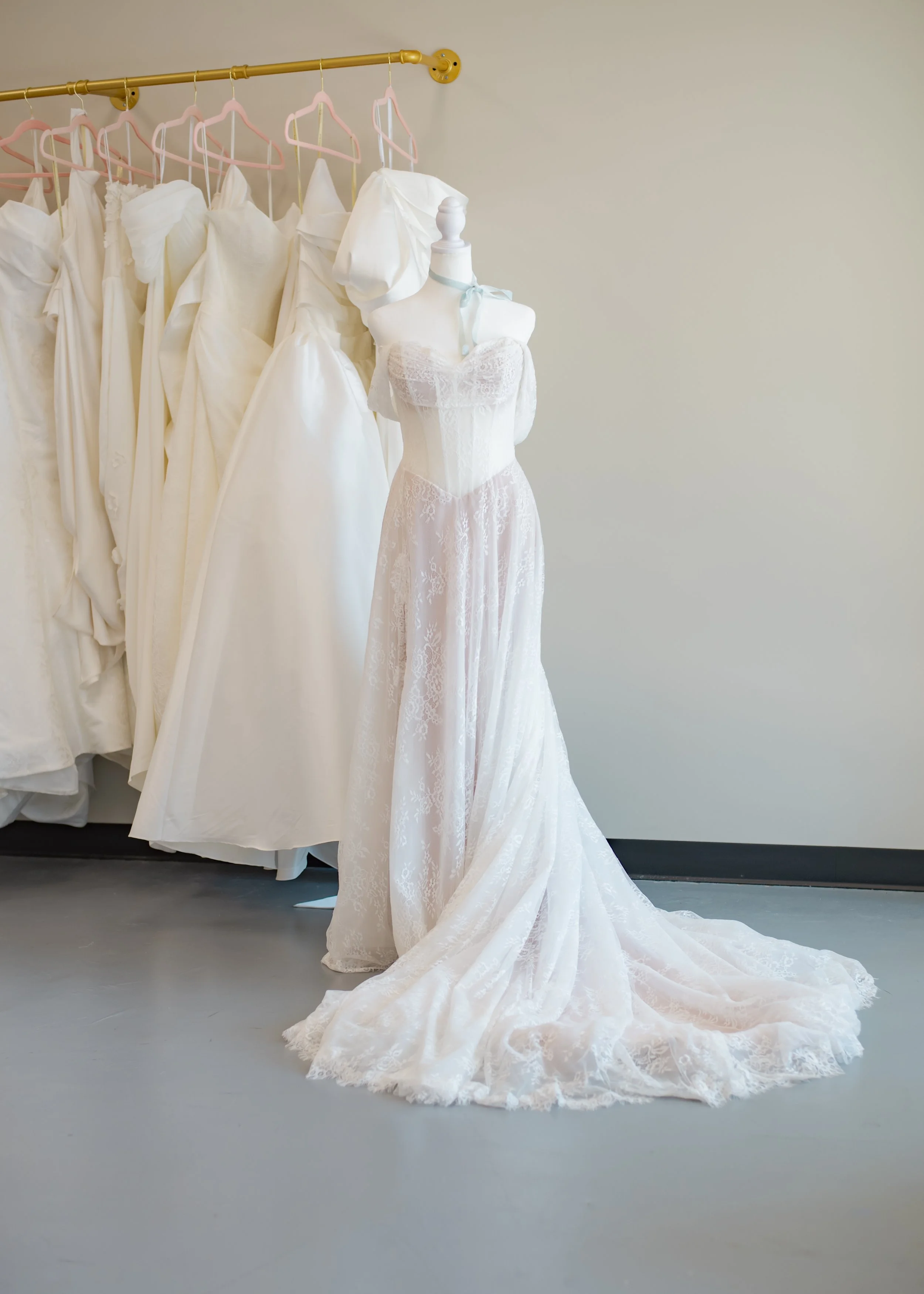 We want your experience to be as unique as your wedding dress is, so our mission is to elevate your wedding dress shopping experience. No stress, no worrying — just another fun + exciting part of the wedding planning process! We have created a sweet + laid back studio for your group ONLY, and we’ve thought about every single step of the process to make you feel as comfortable as possible.